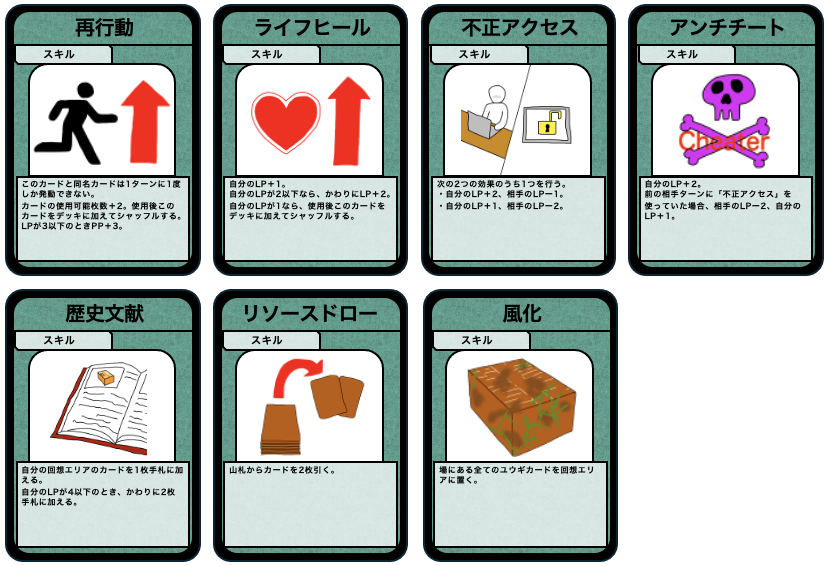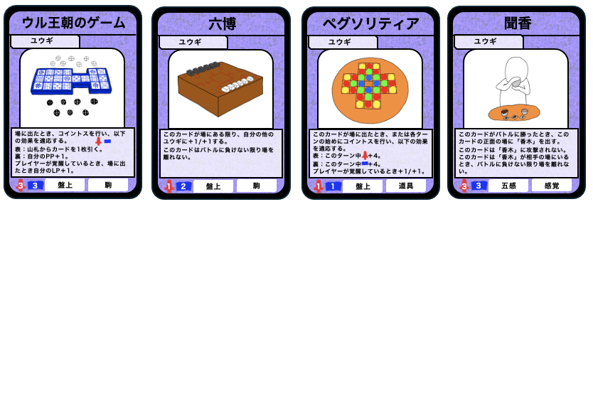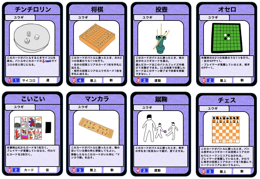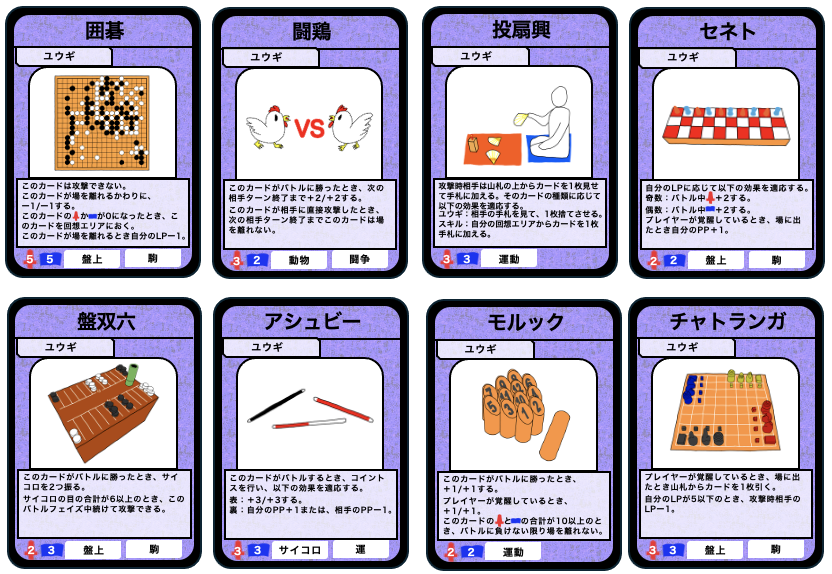 広めるきっかけ作りの一歩として遊戯の名称を知ってもらうことを目標としていましたので、カードゲームはその目標に適した方法だと私は考えて制作していました。