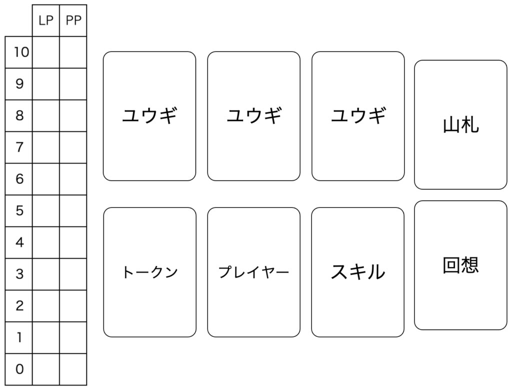 ゲームをプレイしてみたい方向けに、ゲームで使うカード、ゲームマット、説明書の印刷資料を下記にまとめているので、ダウンロード、印刷して遊んでみてください。